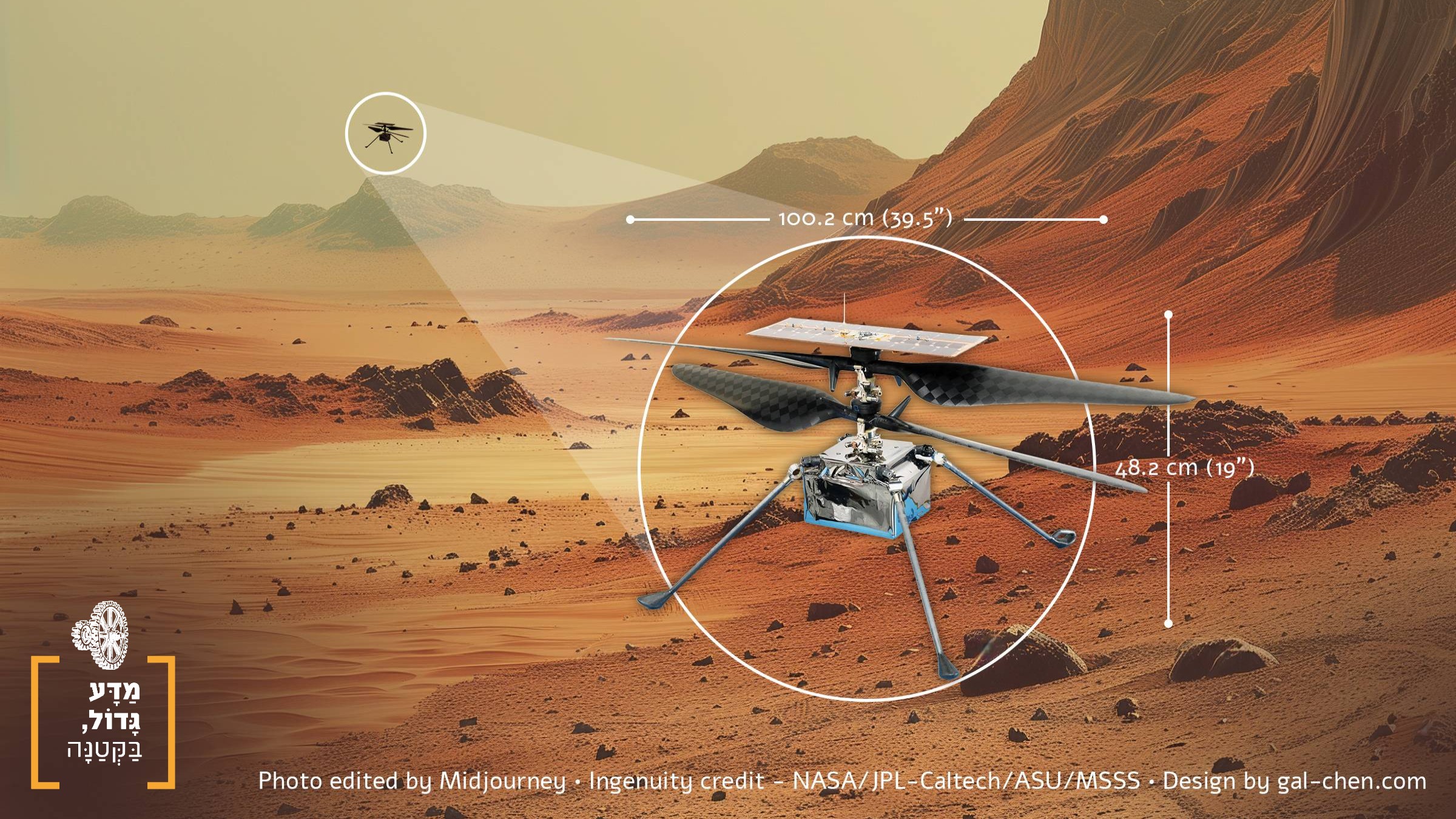 ב-19 באפריל 2021, כלי בגודל קופסת נעליים שמעליה שני מדחפים ופנל סולרי, המריא לראשונה מעל פני השטח של מאדים. זה היה מסוק אינג'ניואיטי של נאס״א. אף שהוא היה קטן וקל יחסית, הוא הוכיח שניתן לטוס במסוק בתנאים הקשים של מאדים ולהתגבר על האטמוספרה הדלילה ועל הרוחות החזקות [1]. מי יודע? אולי עוד מאה שנה ייחשב היום הזה לפורץ דרך, כמעט כמו הטיסה הראשונה של האחים רייט.