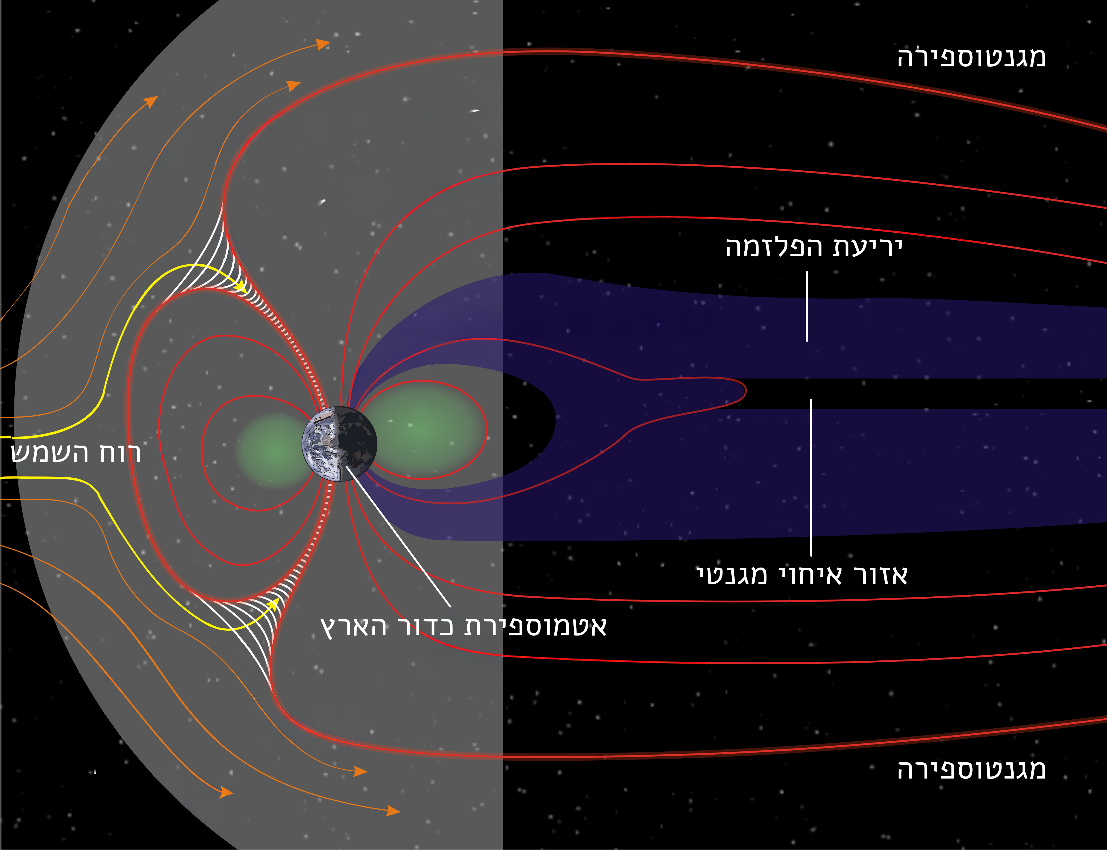 אם רוח השמש הייתה מגיעה ישירות לאטמוספרה שלנו, החלקיקים הטעונים היו פוגעים בהרכבה, ובמשך הזמן היו מפשיטים אותה – כפי שקרה למאדים לפני מיליארדי שנים [1]. ההגנה שלנו מפניה טמונה בשדה המגנטי של כדור הארץ. השדה מתקיים הודות לתהליך שמזין את עצמו ומוסבר באמצעות תאוריית הדינמו, באופן הבא: בחלקה החיצוני של ליבת כדור הארץ ישנו נוזל מותך, מוליך חשמל, המורכב מתערובת של ברזל וניקל. חום אשר נפלט מהליבה הפנימית יוצר תנועות בחומר המותך כתוצאה מתהליך הנקרא הסעת חום, כך שחומר חם עולה, בעוד חומר קר יחסית - שוקע. סיבוב כדור הארץ משנה את כיוון זרימת החומר המוליך עקב כוח קוריוליס [2]. תנועת החומר המוליך יוצרת זרמים חשמליים, ולפי חוקי האלקטרומגנטיות, זרם חשמלי יוצר שדה מגנטי.