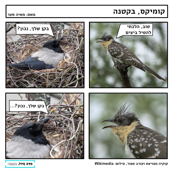 וגם: נקבות הקוקיה האירופית משמיעות קריאות יחסית דומות לקריאות של נצים, ולרוב מיד לאחר שהן מטפילות קנים של ציפורים אחרות! כלומר, הקוקיה המניאקית משמיעה קולות המזכירים נצים, מבריחה את הציפורים מהקינים שהיא מטפילה... ואז אנחנו יודעים כבר מה קורה... 😈