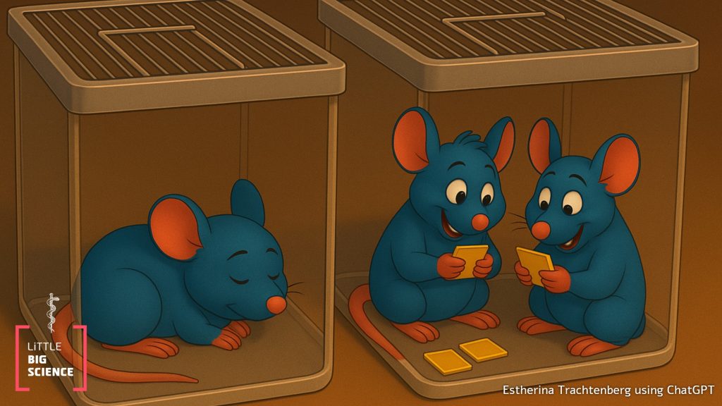 One surprising finding was that when cancer cells were implanted locally in the mammary gland, the tumors that developed in isolated rats were smaller than in group-housed rats. This is not necessarily a positive outcome: genetic analysis of the tumors showed reduced expression of genes related to metabolism and growth, probably because isolation impaired the rats’ ability to maintain proper body temperature. Unlike humans, who keep warm using clothing, rats need social contact to stay warm. Without it, many of the body systems are compromised. Physiologically, isolation imposed such a heavy burden on the body that its systems weakened—so much so that it slowed down tumor growth. Similar observations were reported in isolated mice, where access to a heated nest improved their physical condition.